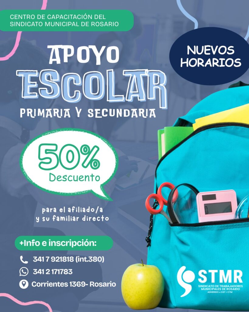 Apoyo Escolar – turno tarde – Primario todas las materias. Secundario solo matemáticas.