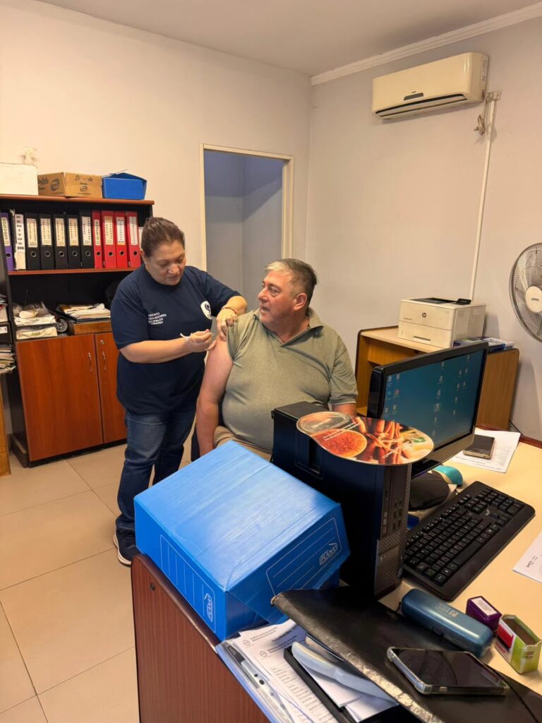 El programa de vacunación sigue recorriendo de manera ininterrumpida la vacunación en diferentes efectores Municipales, siendo una prioridad la salud y seguridad de cada uno de los compañeros y compañeras Municipales.