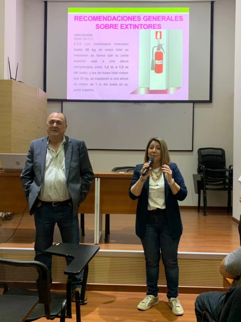 El día 22 de octubre se llevo a cabo una jornada de Capacitación en el Uso de Extintores Portátiles organizada por la Secretaría de Desarrollo Humano, Capacitación y Educación a cargo de la Dra. Mónica Milillo y Soledad Meana y la Subsecretaría de la preservación de las condiciones laborales a Cargo del Dr. Jorge Martínez.